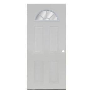 36 x 80 White Sunburst Cathedral Metal Entry Door for Home Exterior